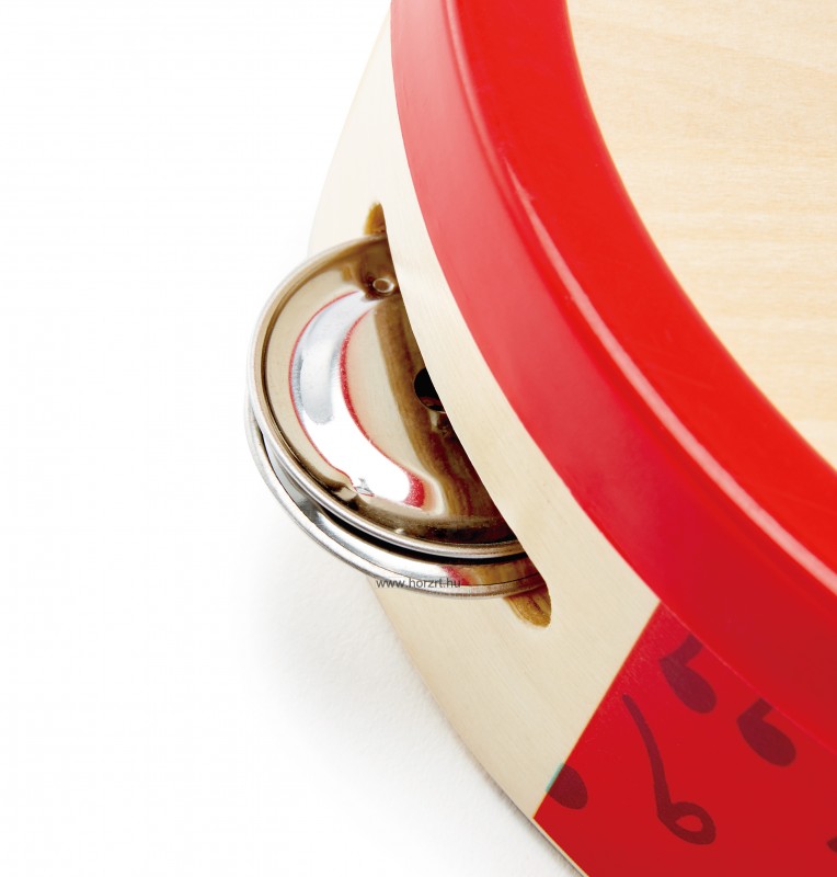 A 3 db csörgő fémből, a dob piros karimája műanyagból készült.
