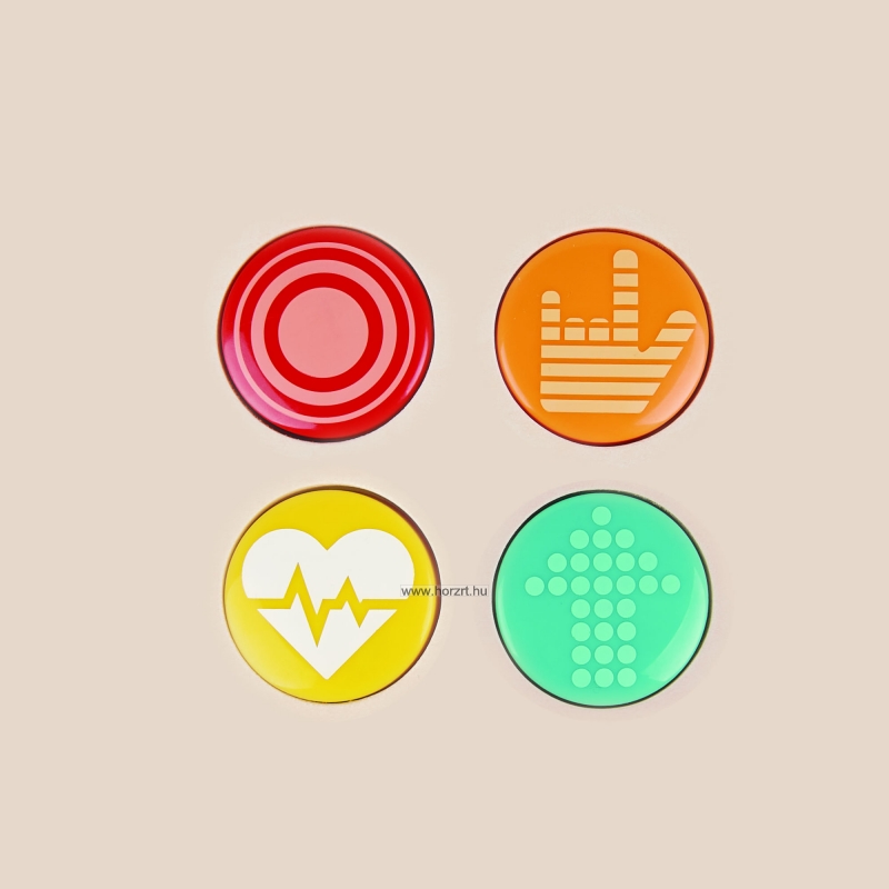 A 4 színes gomb (piros-körmintás, sárga-szívverés mintás, kék-nyílmintás, narancs-rock mintás) különböző effekteket szólaltat meg.