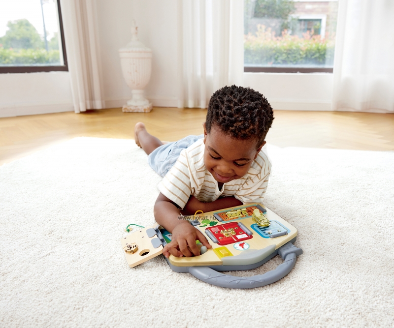 A Hape hordozható matatófala egy igazán különleges és sokoldalú fejlesztő játék, mely bárhol könnyed kikapcsolódást nyújthat a gyerekeknek.