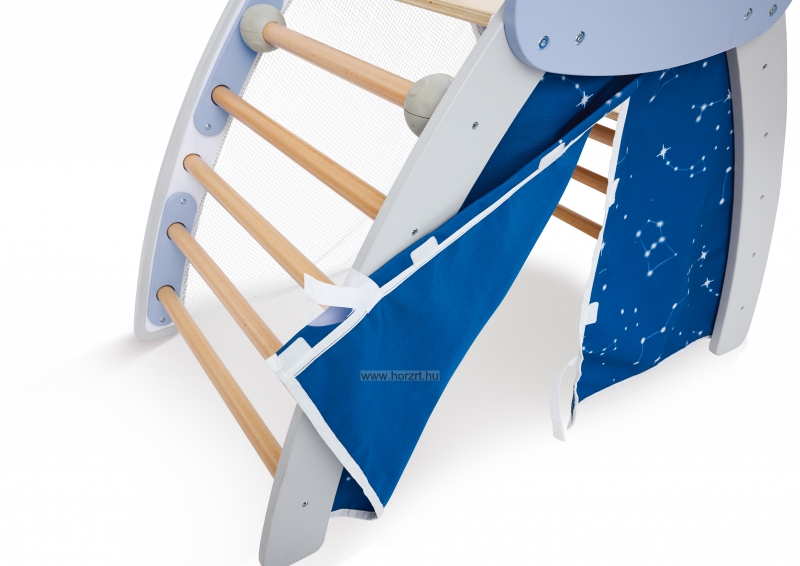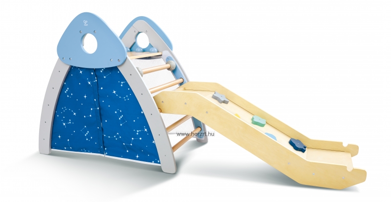 A mászóka különlegessége, hogy szabadon változtatható, hogy épp csúszdaként vagy mászófalként használjuk, hiszen a kis rámpa két oldala eltérő elemekkel lett felszerelve. Az átalakításhoz felnőtt segítsége szükséges!