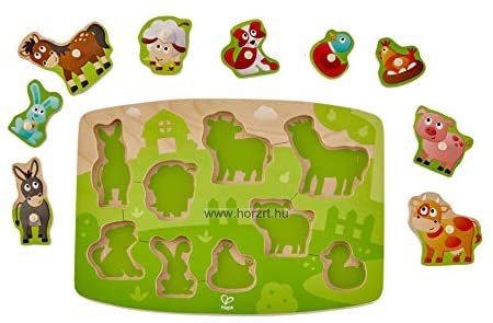Az állatok csak arra várnak, hogy megtaláld helyüket a képen. Fogantyús puzzle a legkisebbeknek, mely kedves színeivel és formáival biztosan örömet szerez majd. Kiváló minőségű, időtálló forma berakó, a Hape kínálatából.