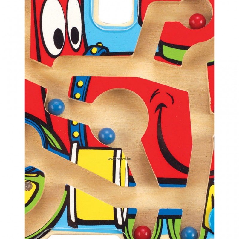 Mágneses vonalvezető a kézügyesség fejlesztésére. A kisvonatban kell a mágneses ceruzával, a plexi lap alatt elvezetni a 3 db kék, 3 db piros golyót. A mágneses ceruza műanyag zsinórral van a vonalvezetőhöz rögzítve, tárolására egy kis lyuk van kialakítva. 2 éves korú gyermekek használatára CE minősítéssel ellátva!