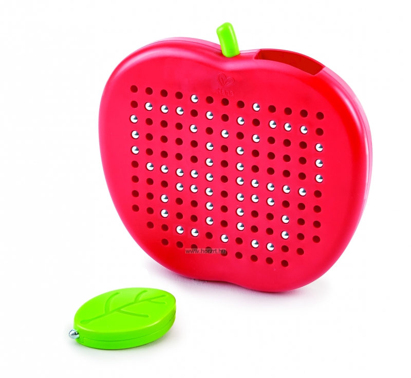 Ez a vidám, élénkpiros alma fémgolyókkal van tele. A hozzá tartozó levél formájú mágnestoll segítségével képeket és mintákat alkothatnak a gyerekek kedvük szerint.