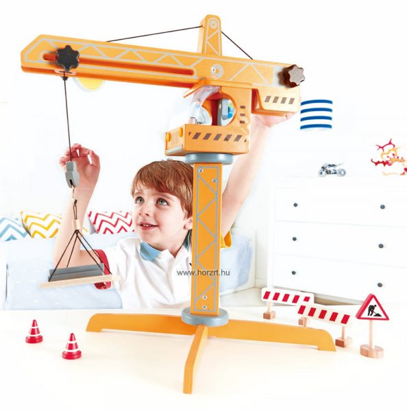 A legtöbb kisfiú szereti az építkezős játékokat. Ez a nagyszerű daru segítségedre lesz a magasabb épületek kivitelezésének megvalósításában is. A kreativitás és a fantázia remek fejlesztő eszközei, a különböző építőjátékok. A daru használata közben gyakorolhatóak a térirányok, fejleszti a térlátást és a problémamegoldó képességet, megismerhetőek a csiga működésének alapjai. A daru különlegessége, hogy nem csak emelni képes, hanem az emelés távolsága is egyszerűen változtatható. A kínálatunkban szereplő sokféle teherautó és építőkocka is nagyszerű kiegészítője lehet ennek a játéknak. A képen látható dömper és markoló, NEM része a készletnek!