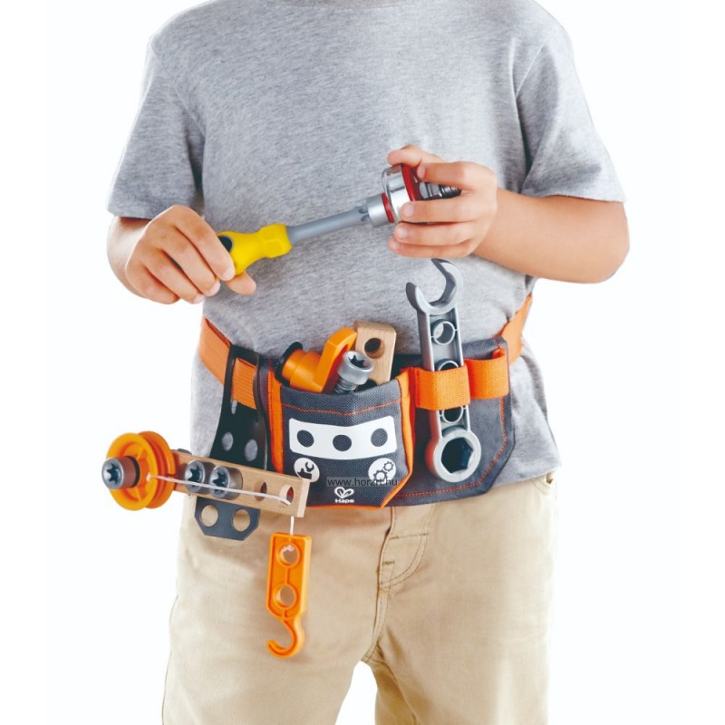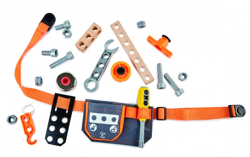 Minden mesterembernek szüksége van egy jó szerszám övre. Sürgősen meg kell szerelni valamit? Építeni, javítani szeretnél? Ezt a szerszám övet használva mindig a kezed ügyében lesznek a szükséges eszközök. Csavarhúzó, villáskulcs, de még az övre szerelhető kis daru is rendelkezésedre áll. A Hape Junior Inventor applikáció ingyenesen letölthető az Apple Store és a Google Pay áruházakból. Összeszerelési ötleteket, segítségként használhatjuk. Ajánljuk mellé még az alábbi termékeket: HP E3031 - Hape Első szerelőkészletem HP E3027 - Hape Tudományos barkácsasztal HP E3029 - Hape Tudományos barkácskészlet
