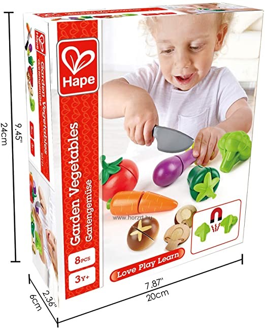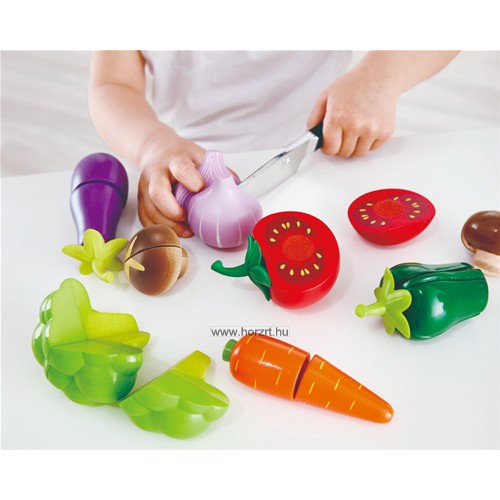A kerti zöldségek nagyon egészségesek, pláne, ha saját magad ülteted és termeszted. Válogasd ki a kedvencedet és tálald a fő étel mellé! A gyermekbarát fa késsel könnyedén kettévághatod majd a tépőzár segítségével újra összeillesztheted őket.