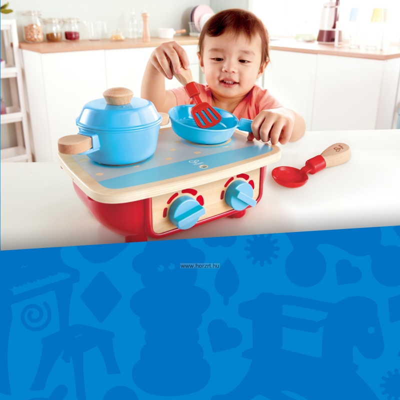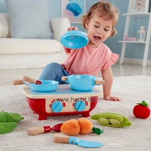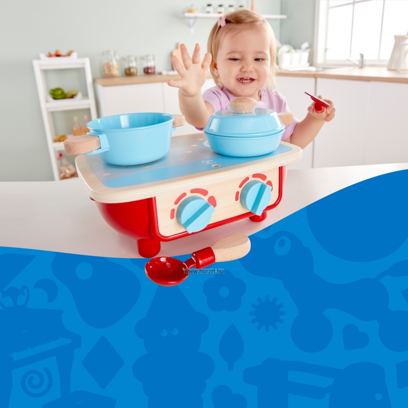 A Hape kis tűzhelye ideális kiegészítője a babakonyhai szerepjátékoknak. A gyerekek szeretik utánozni a felnőtteket, a főzőkészlet segítségével pedig a kicsik együtt tevékenykedhetnek az anyukájukkal. Játék közben megismerik a konyhai folyamatokat, amely remek tanulási lehetőséget biztosít.