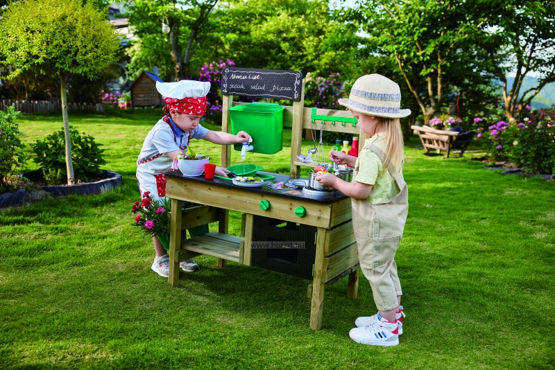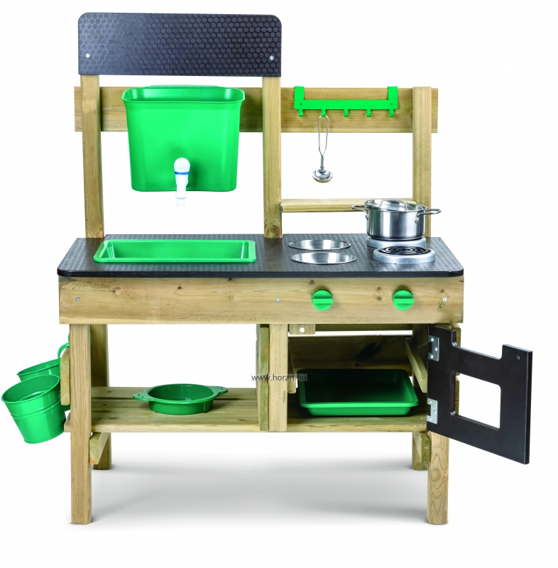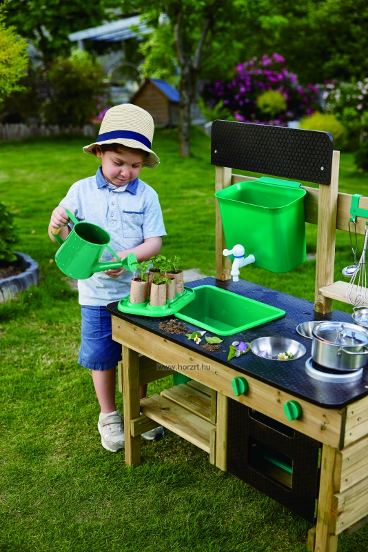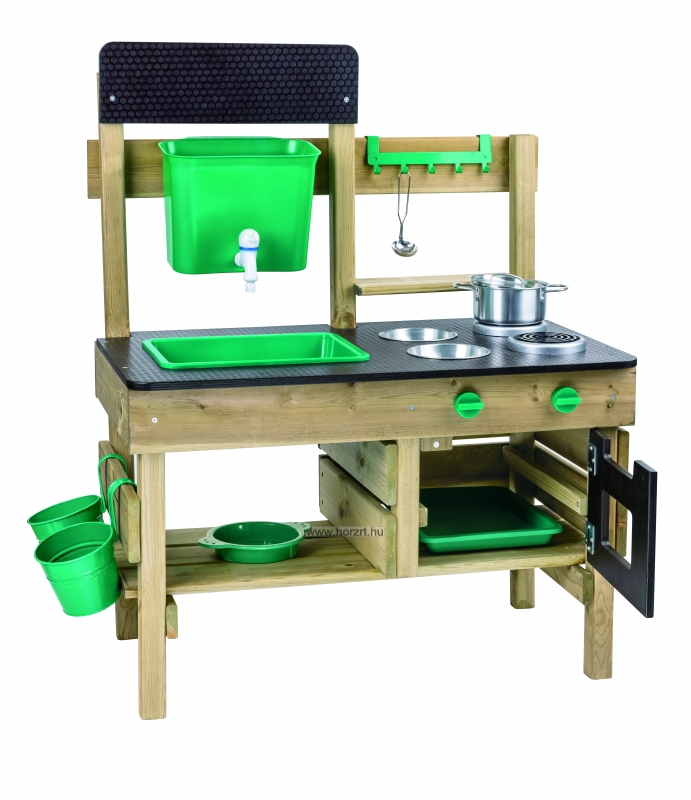 A gyerekek szeretnek a babakonyhában játszani és kedvenc tevékenységüket ezentúl a szabadban is végezhetik! A kis konyha minden szükséges eszközzel fel van szerelve, így az élethű főzés élményét nyújtja a gyerekeknek.