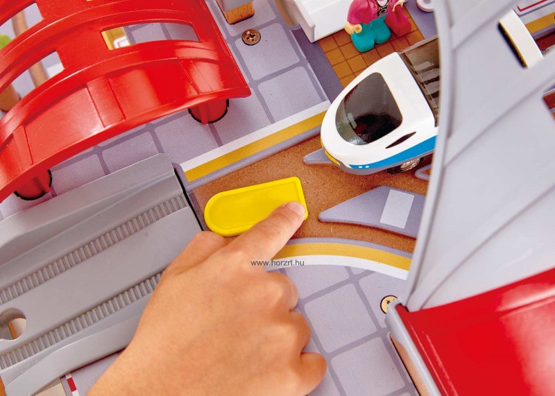 49 darabos készlet, mely a pályaudvaron kívül tartalmaz még 25 db pálya elemet, taxit, buszt, vonatot, 3 db figurát és még sok minden mást.