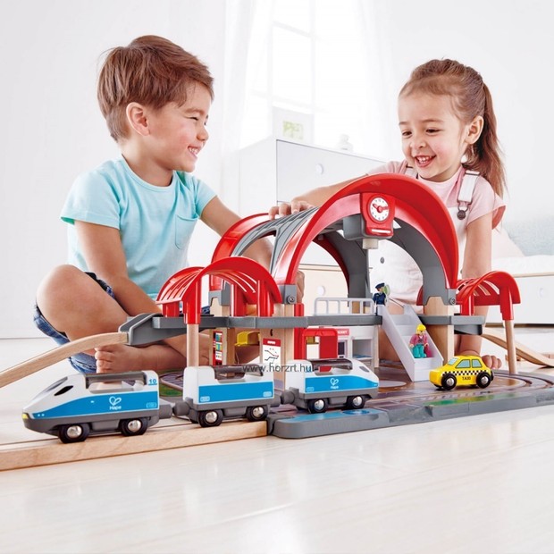 A Hape Főpályaudvar vonatszett tehát fejleszti a szem-kéz koordinációt, a kreativitást és megmozgatja a képzeletet.