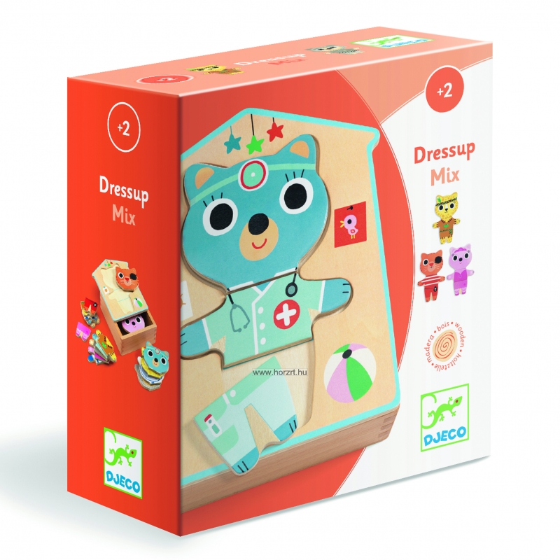 A készlet 18 db puzzle elemet tartalmaz, amelyek lehetővé teszik a gyermekek számára, hogy különböző családtagok képeit rakják ki. A puzzle elemek logikus felbontása segíti a kicsiknek a kicsi-nagy, kisebb-nagyobb relációk megértését, miközben fejlesztik tapintásos érzékelésüket is.