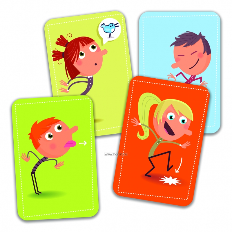 Tartalma: 32 db kártyalap - 4x8 db grimasz és cselekvés