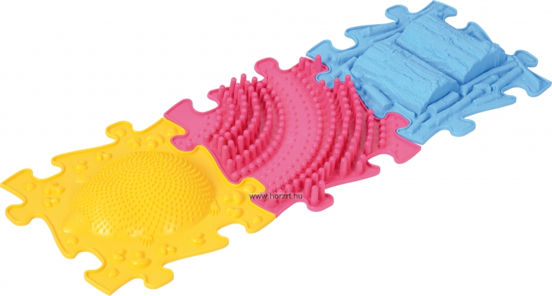 Ezek az élénk színekben pompázó, különböző keménységi fokú szenzoros szőnyegek utánozzák a természet legkülönfélébb felületeit: a füvet, a kavicsokat, az ágakat és a kagylókat.