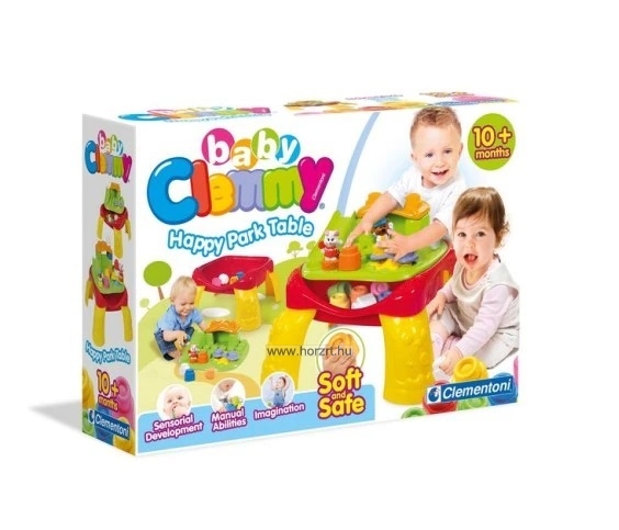 A készlet a játszóasztal mellett még 2 db állatfigurát és 10 darab puha Baby Clemmy építőkockát tartalmaz. Az építőkockákkal a gyerekek biztonságosan játszhatnak, mivel a játék nem tartalmaz az egészségre káros anyagokat.