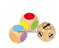 - 3 db fa dobókocka, 2 db szín- és 1 db méretdobó