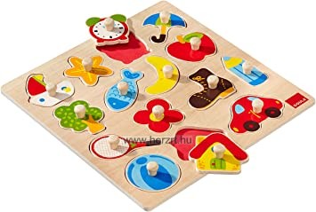 Ezek a fából készült fogantyús puzzle-k a legkisebbek kézügyességét, formafelismerését fejlesztik.