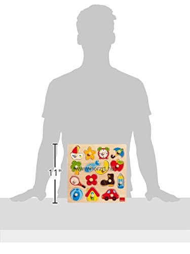 Tartalma: 1 db alaplap, 15 db fa fogantyús puzzle elem.