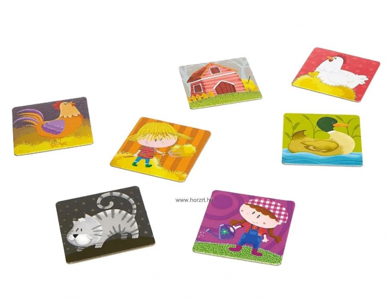A szett farm tematikával lett kialakítva, így a kis lapocskákon házi- és haszonállatok, mezőgazdasági járművek és eszközök, illetve jellegzetes tanyasi épületek láthatók.