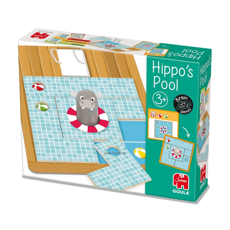 A Víziló a medencében gyermekjáték lehetővé teszi gyermekeknek a logikai gondolkodás és a vizuális észlelés fejlődését. Különböző játékvariációk közül választhatunk az egészen kicsik és a már nagyobbacska gyerekeknek. Fontos, hogy az ő szintjüknek megfelelő feladatkártyával kezdjük a játékot, hogy kellemes tapasztalatokat szerezzenek és szívesen folytassák azt. A játék célja a feladatkártyákon szereplő feladatokat helyesen megoldani, úgy hogy a labda, a mentőöv és a víziló a megfelelő helyen legyen az alaplapon. Egyedül játszható játék mely nagyon jól fejleszti a megfigyelő- és kombinatorikai készséget és a logikus gondolkodást.
