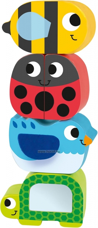 A játék célja, hogy a gyerekek játékos módon ismerkedjenek meg az állatokkal, a színekkel, formákkal és más alapvető fogalmakkal. A játék segíti a gyermekek tanulását, miközben finommotorikus készségeik, és a szín- és formafelismerésük is fejlődik. Kiváló minőségű, biztonságos anyagokból készült. |