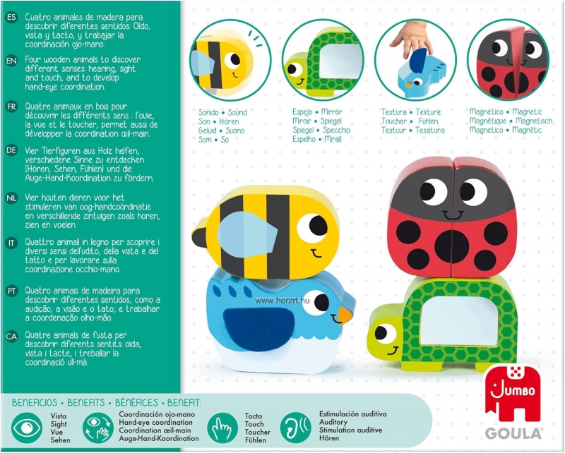 Szórakoztató és tanulságos játék, amely segít a legkisebbeknek felfedezni a körülöttük lévő világot.