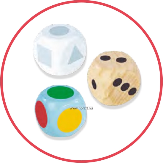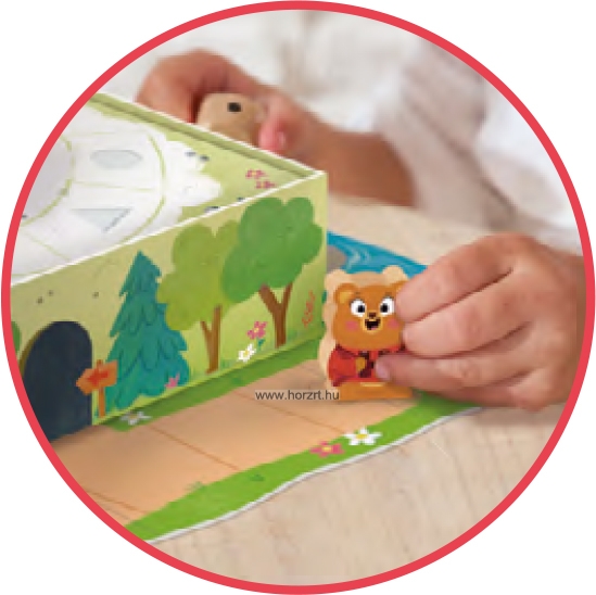 Minden játékos válasszon egy mackó figurát és helyezze el a startmezőn. A játékosok az óramutató járásával megegyező irányban következnek egymás után. Egyszerre két vagy több bábu is állhat ugyanazon a mezőn. Az ösvényen három különböző szakasz található: folyó, erdő és hegy, minden szakaszhoz más-más dobókocka tartozik. Amikor befejeztél egy szakaszt, hagyd a bábudat a következő útvonal előtt, a megfelelő nyíl tetején. Ezután, a következő körben haladj előre az új szakasznak megfelelő dobókockával: 1. Átkelés a folyón: dobj a színes kockával és lépj a megfelelő színű kőre. 2. Átkelés az erdőn: dobj a pontozott kockával és lépj előre annyit, amennyit dobtál. Ha a kocka üres oldalát dobtad, nem léphetsz előre. Ha a barlang bejáratánál lévő mezőre lépsz, tedd át a bábudat a másik oldalra. Ha a barlang kijáratánál lévő mezőre lépsz, nem kell visszalépned. Ha a pontozott kockával rendelkező mezőre lépsz, dobj újra és haladj tovább. Amikor elérted az ösvény végét, hagyd a bábudat a létra előtti nyílon. Nem kell pontosan dobnod: ha nagyobb számot dobsz, csak állj meg a létra lábánál. 3. Hegymászás: dobj a geometriai formákat ábrázoló dobókockával és lépj a következő, megfelelő alakzatra. Az utolsó mező a hegy tetején található. Az első játékos, aki eléri a hegy tetejét, átveszi a zászlót és megnyeri a játékot. ÖNNEK AJÁNLJUK |