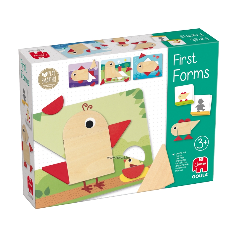 A Goula formakirakó játéka 3 éves kortól nyújt kihívásokkal teli játékot a gyerekeknek. A játék többféleképpen is játszható. A feladatkártyákon szereplő minta alapján különböző formák tehetők ki. Nehezebb változata, amikor a kártyán már csak a formák sziluettje látható és a gyerekeknek kell rájönni, hogy melyik geometriai formát kell használniuk.