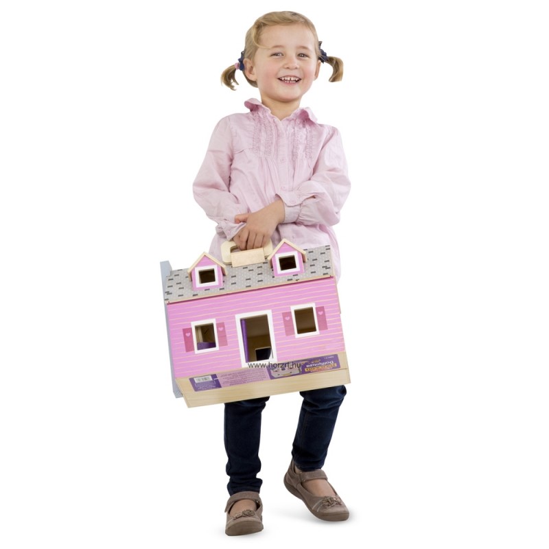 Hordozható, kinyitható babaház, amelyet magaddal tudsz vinni hosszú utazásokra is akár, a kis fogantyú segítségével. Ha már befejezted a játékot, csukd össze és egyszerűen tudod tárolni.