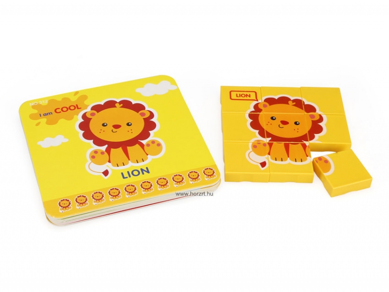 10 különböző állatkát rejt a doboz. A képkártyák segíthetnek az összeállításban is illetve a felirat az állatok angol nevével is megismerteti a gyermekeket.