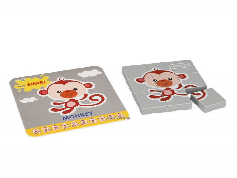 A műanyag képdarabkákat helyezd az alaplapra, így az összerakott kép megmarad, nem szóródik szét. Találd meg a bárány, a mackó, az oroszlán, a majom és a többi állat képének darabjait!