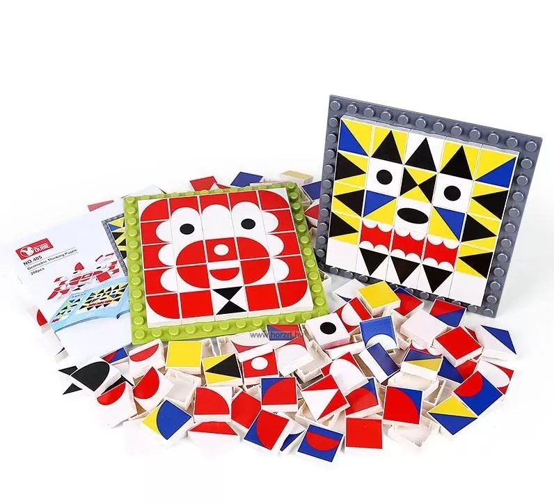 Színes, nagyméretű mozaik lapocskákból rakhatnak ki a kicsik különböző képeket.