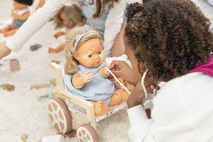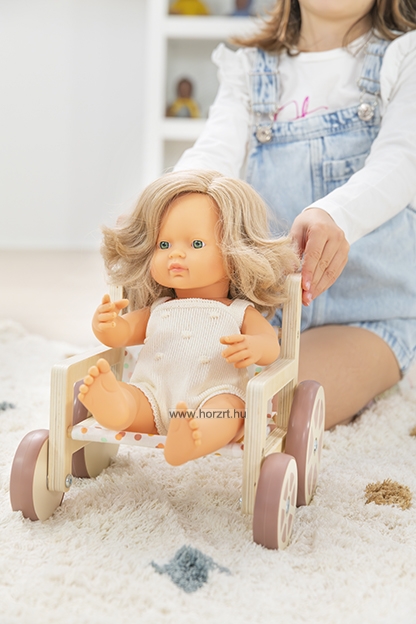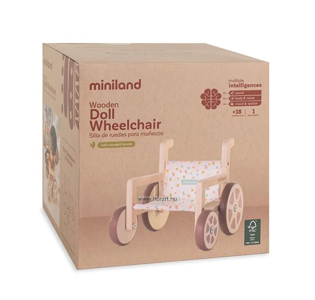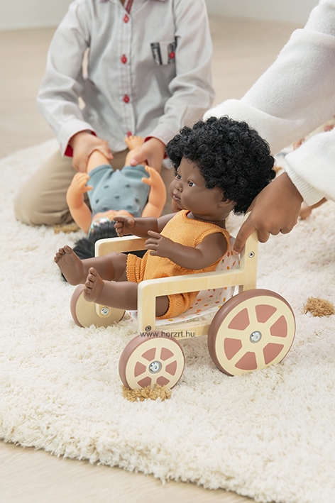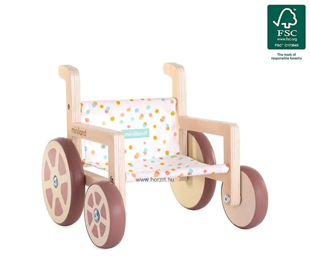 Ennek szellemében készült el ez a modern és különleges megjelenéssel rendelkező kerekesszék is, mely a 38 cm-es babákhoz ajánlott elsősorban. A játékeszköz több szempontból is különleges, hiszen fa elemei 100%-ban fenntartható erdőgazdálkodásból származó - FSC - faanyagból készültek, illetve kerekei gumi bevonatának köszönhetően hangtalanul gurulnak. 18 hónapos korú gyermekek használatára CE minősítéssel ellátva! ÖNNEK AJÁNLJUK