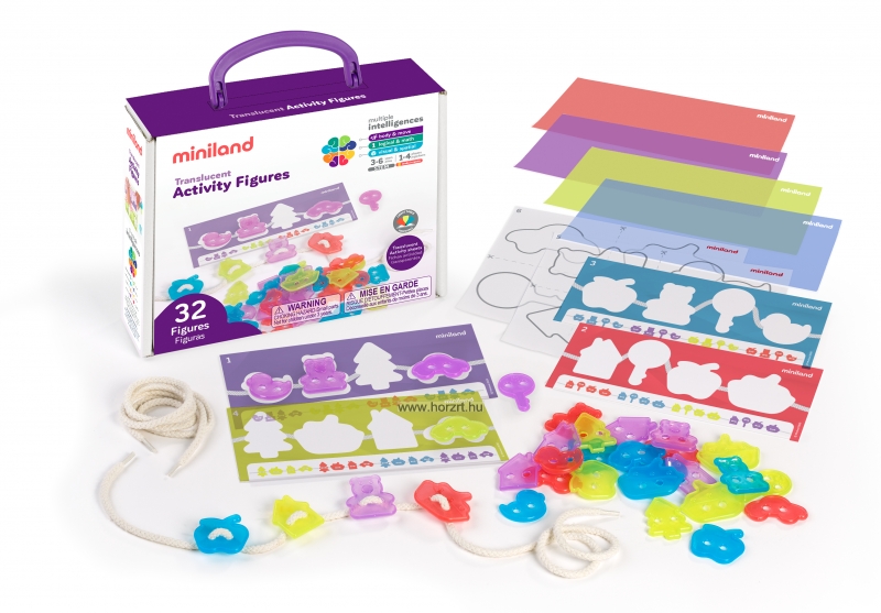 - 32 db színes, áttetsző, fűzhető forma