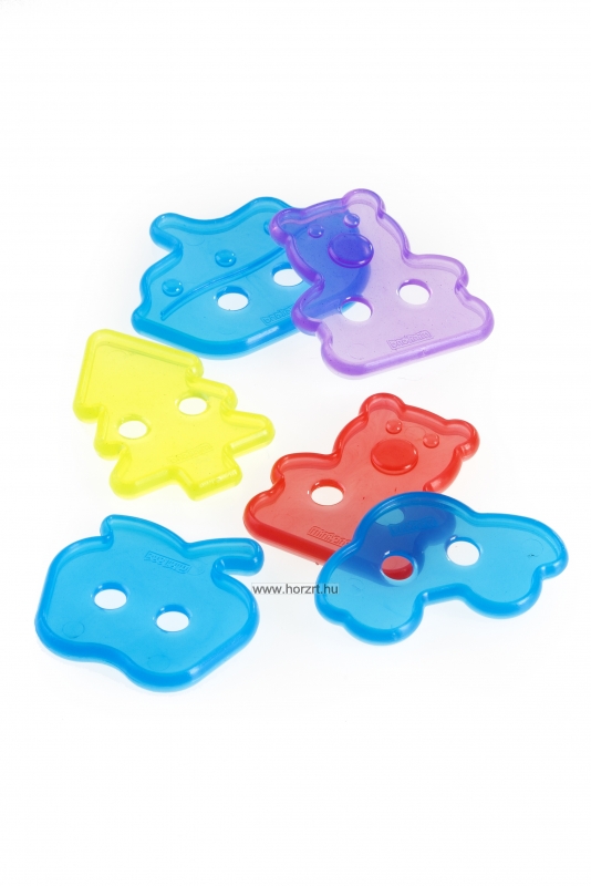 A különböző színeken túl, a formák kedves alakja pl. maci, alma, hajó stb., ösztönzi a gyerekeket a játékra.