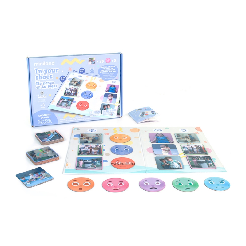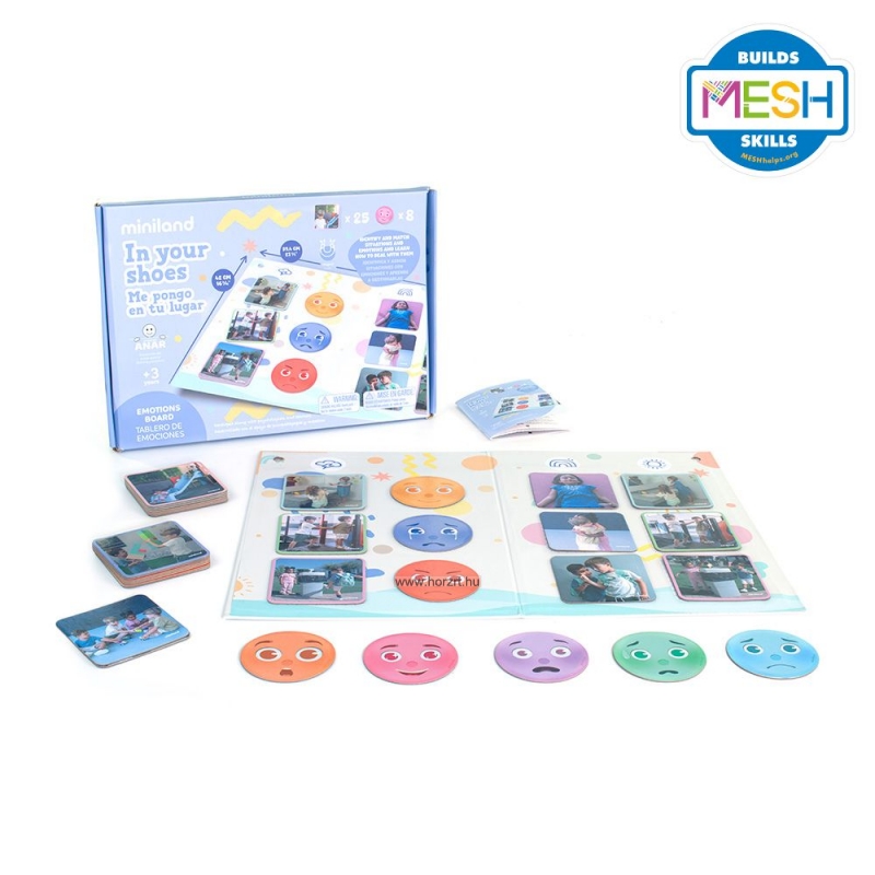 Ideális választás: - Óvodák és iskolák számára, hogy támogassák a szociális és érzelmi tanulást. - Szülőknek, akik szeretnék otthon is fejleszteni gyermekük érzelmi intelligenciáját. - Fejlesztő szakembereknek, például pszichológusoknak és pedagógusoknak, akik játékos formában kívánják elősegíteni a gyermekek érzelmi fejlődését. Fejleszti: - Empátia és önismeret - Társas és kommunikációs készségek - Érzelmi tudatosság és problémamegoldás
