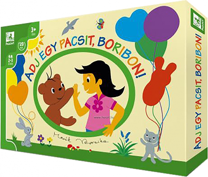 Mennyire örült Boribon, amikor egyszerre hét lufit kapott ajándékba! Te is összegyűjthetsz hét különböző színű lufit. Mindegyik lufi alatt találsz egy kis feladatot, amit teljesíteni kell. Fogadjunk, hogy ilyen játékot nem játszottál még soha: meg kell érinteni egymást! Megcsikizhetjük egymás tenyerét, meghúzhatjuk egymás fülét, haját. Az is lehet, hogy puszit kell adnunk. Ezért olyanok játsszák ezt a játékot, akik szeretik egymást: szülő és gyerek, nagyszülő és unoka, nagytesó és kistesó – vagy barátok egymás közt. Kettesben a legjobb a játék, de azért egy harmadik is belefér...