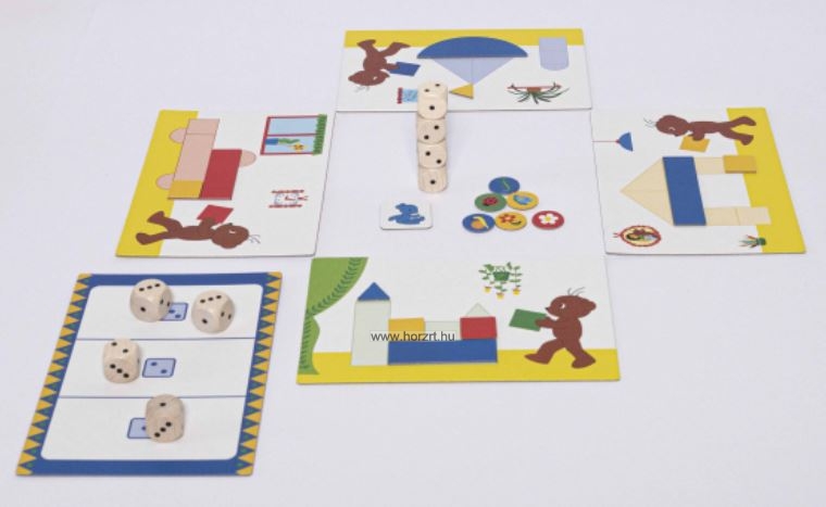 Boribon kiborította színes építőkockáit, és szeretne egy szép házat, kisautót vagy hajócskát építeni a kis kék mackójának. Segítsetek neki: dobjatok a dobókockákkal, és rakjátok egymás tetejére minél magasabb toronyba őket a szabályoknak megfelelően. Persze időnként kockáztatni kell, és arra is ügyeljetek, hogy fel ne boruljon a torony… ügyességetek jutalma pedig 1 vagy 2 építőelem lesz. Akinek legelőször sikerül 7-et összegyűjteni, ahhoz költözik be a kék mackó!