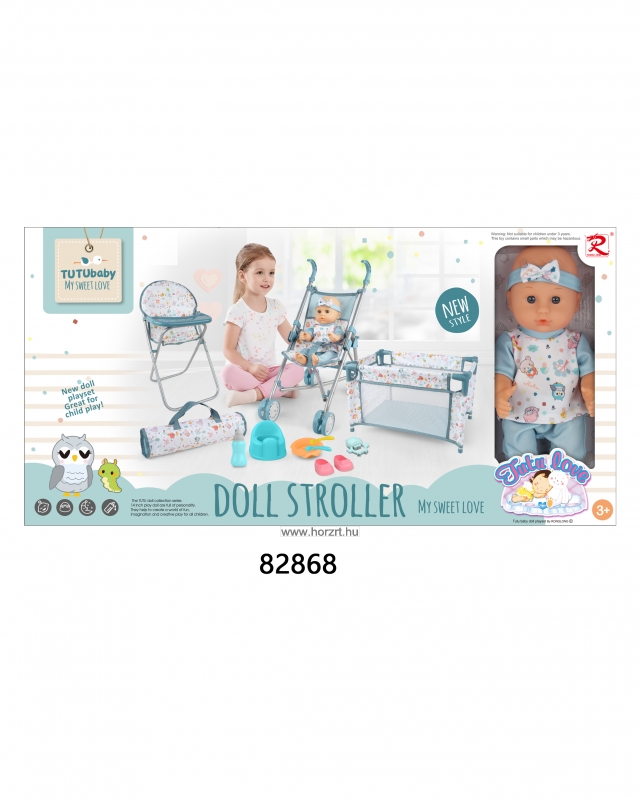 Baba babakocsival, etetőszékkel, babaággyal és egyéb kiegészítőkkel