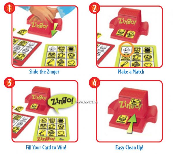 A Zingo! egy gyors, szórakoztató párosító játék, ami a klasszikus bingó szabályain alapszik. Csúsztasd el a Zingo! adagolót, hogy előtűnjenek a lapocskák, párosítsd a képeket, fedd be a tábládat, és nyerj! A két nehézségi szint minden korosztály számára nagyszerű szórakozást nyújt!