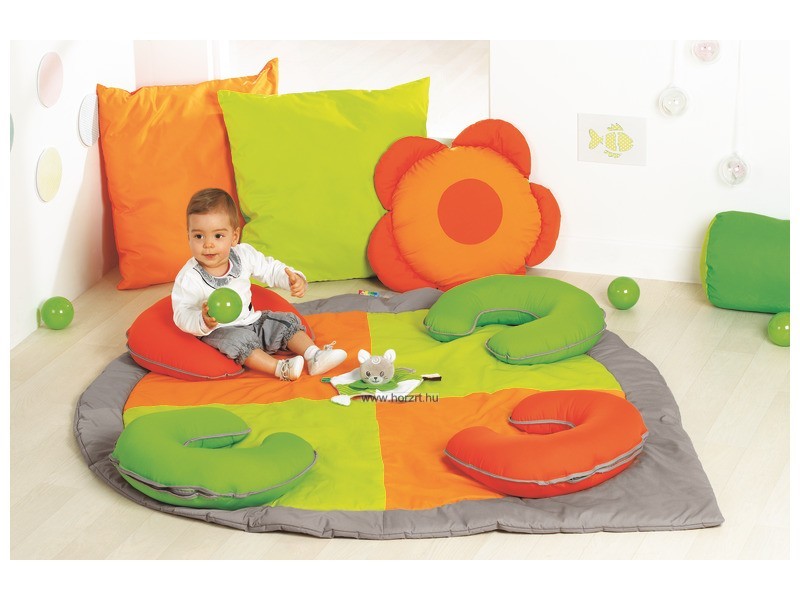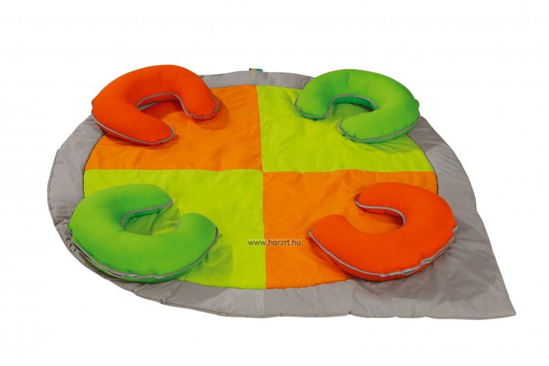 A szőnyeg és a patkó alakú párna együtt, egy biztonságos és kényelmes eszközt alkot. A patkó formájú párna segít a gyerekeknek abban, amikor szeretnének felülni, és így könnyebben megtalálják az egyensúlyt. A kicsik így biztonságosabban és bátrabban mernek mozogni.