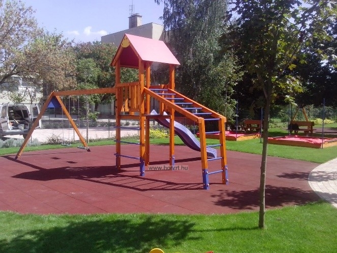 A 2006 évtől forgalmazott hazai fejlesztésű és gyártású, rugalmasan, a helyi igényekhez alakítható játszótéri eszközcsalád tagjai szerkezetükben pácolt fenyőből, színterezett fém tartólábakkal készülnek. Nagy tartósságú, színes HDPE műanyag és festett, vízálló lemez lapokkal, kiváló minőségű műanyag kiegészítőkkel, alapáron műanyag csúszdákkal szerelt, törekvésünk szerint szép, színes, hazai igényekre optimalizált, nagy játszóértékű, tartós játékok. Az eszközök megfelelnek a vonatkozó, új MSZ EN 1176/1:2018 szabványnak, és rendelkeznek Tanúsítvánnyal. - A játszótéri eszközeinknél a feltüntetett árak bruttó árak, tartalmazzák az áfát. - További felmerülő költségek: - - szállítási költség, mely függ a megrendelt eszközök számától, fajtájától, a szállítási távolságtól - telepítési költség, az eszközszámtól függően 12-18% - ütéscsillapító gumiburkolat, gumitégla, vagy folyami homok a terület nagyságától függően - használatbavételi TÜV ellenőrzés