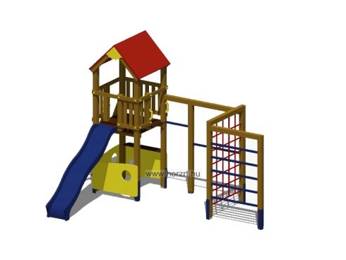 A 2006 évtől forgalmazott hazai fejlesztésű és gyártású, rugalmasan, a helyi igényekhez alakítható játszótéri eszközcsalád tagjai szerkezetükben pácolt fenyőből, színterezett fém tartólábakkal készülnek. Nagy tartósságú, színes HDPE műanyag és festett, vízálló lemez lapokkal, kiváló minőségű műanyag kiegészítőkkel, alapáron műanyag csúszdákkal szerelt, törekvésünk szerint szép, színes, hazai igényekre optimalizált, nagy játszóértékű, tartós játékok. Az eszközök megfelelnek a vonatkozó, új MSZ EN 1176/1:2008 szabványnak, és rendelkeznek Tanúsítvánnyal. - A játszótéri eszközeinknél a feltüntetett árak bruttó árak, tartalmazzák az áfát. - További felmerülő költségek: - - szállítási költség, mely függ a megrendelt eszközök számától, fajtájától, a szállítási távolságtól - telepítési költség, az eszközszámtól függően 12-18% - ütéscsillapító gumiburkolat, gumitégla, vagy folyami homok a terület nagyságától függően - használatbavételi TÜV ellenőrzés