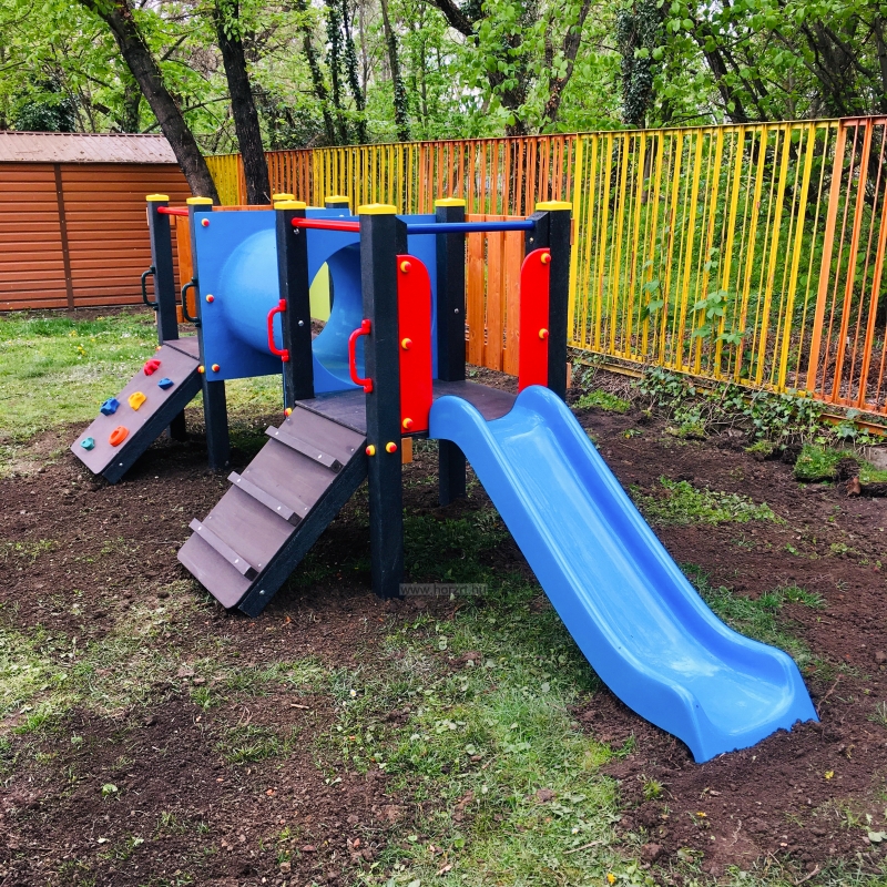 Bölcsődei csúszdás játszóvár - alagúttal létrával, mászófallal