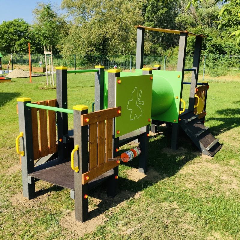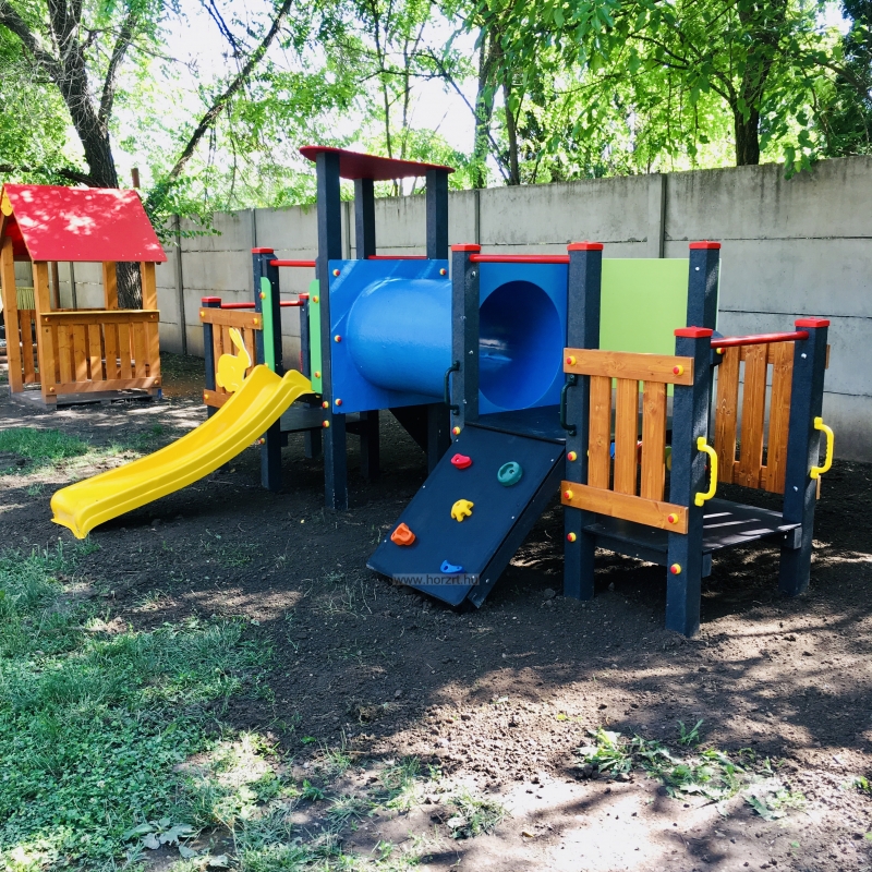 Bölcsődei mászóka alagúttal és csúszdával a legkisebbek számára kialakítva.