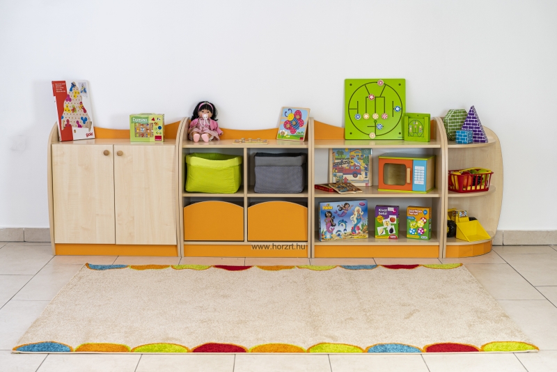 Hasznos segítség a gyermekek játékainak tárolására, és egyben dísze a gyermekszobának.