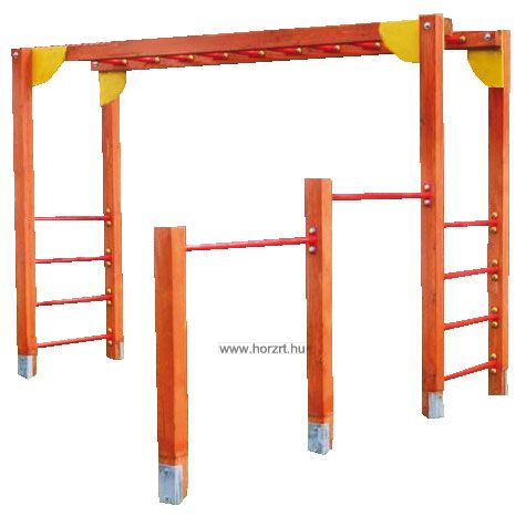 10x10 cm-es keresztmetszettel. Szinterezett fém kapaszkodókkal és tartólábakkal. A csavarokat esztétikus, színes csavartakarók fedik és teszik biztonságossá.