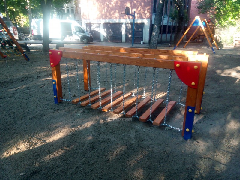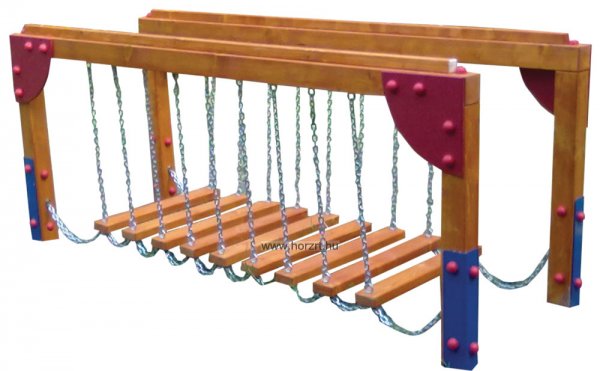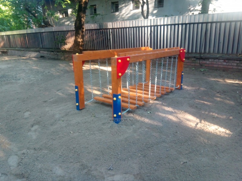 A lánccal összefűzott fagerendák minden irányba elmozdulnak! Szükség lesz kapaszkodásra is! Ki tud rajta a legügyesebben átmenni?