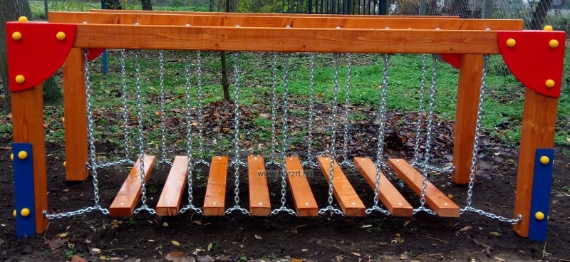 A lánccal összefűzott fagerendák mozognak, ahogy a gyerekek átmennek rajta! Szükség lehet kapaszkodásra is!