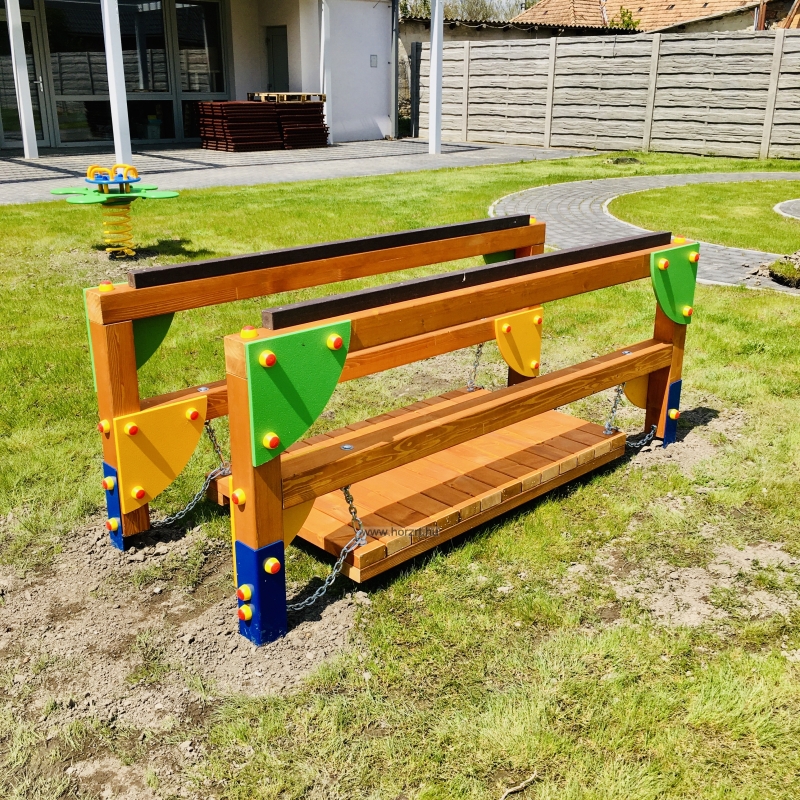 Alacsonyabbb (kétszintes) kapaszkodó kialakítás, rövidebb hídelem, színes dekorelemek, kisebb kilengés. Emiatt nagyon szeretik a kisgyermeknevelők is!