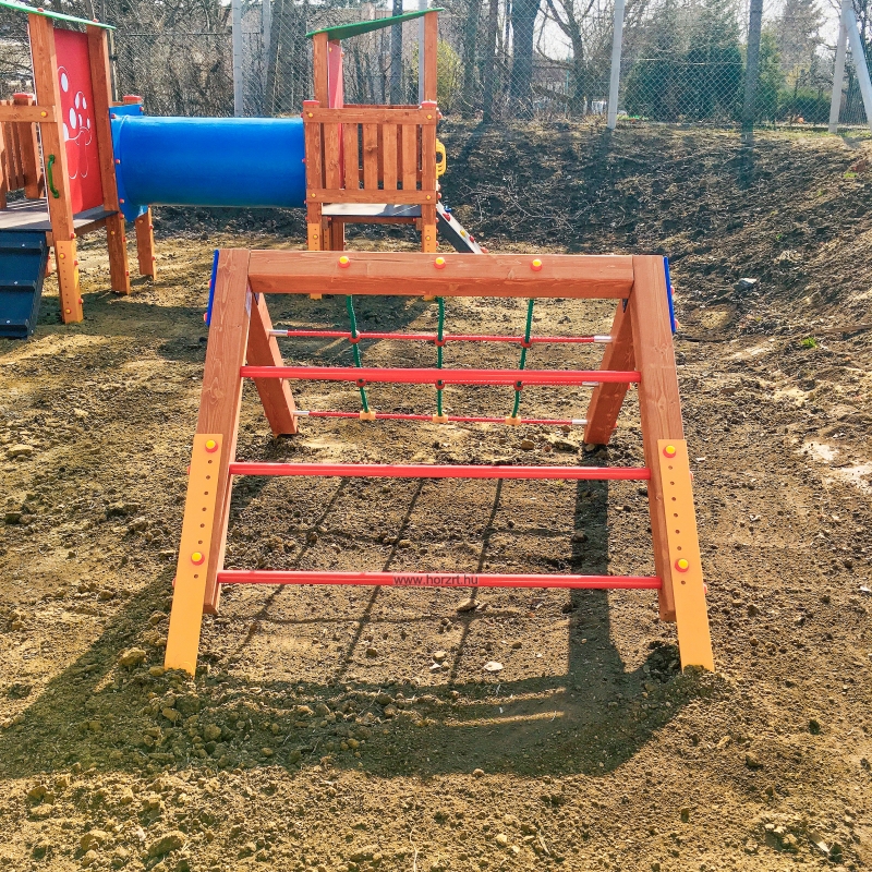Mászóka kötálhálóval, bordásfallal, csúszórúddal, gumós mászókötéllel